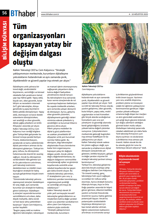 According to the information given by Kafein Technology CEO Cem Kalyoncu, developments in Turkey progress in parallel with this global momentum. The increase of digital investments in the finance, telecommunications, retail, and public sectors also shows this transformation. Turkey’s young population provides an important advantage in accelerating this transformation. However, in order for this transformation to become sustainable, increasing R&D investments, supporting local technology production, and developing qualified human resources with a strategic perspective carry great importance.