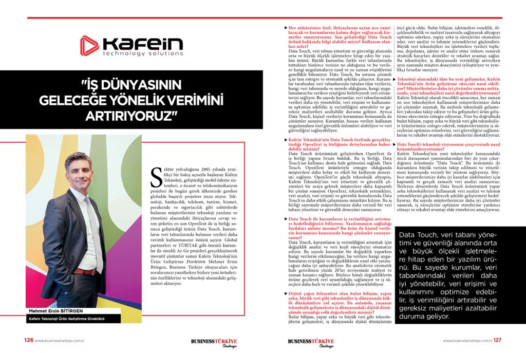 Kafein Technology, which began its journey in the industry in 2005 with an innovative perspective, has successfully implemented projects both domestically and globally, with its developed mobile payment systems, e-commerce, and telecommunications projects. The company meets the technology software and management needs of clients in sectors such as technology, banking, telecommunications, tourism, services, retail, and insurance. Its most recent product, Data Touch, developed in collaboration with OpenText, enables organizations to make more efficient use of the data in their databases. Kafein Technology, which continuously conducts R&D projects with global partners and important institutions like TÜBİTAK, provides innovative solutions. Mehmet Ersin Bitirgen, the Product Development Director of Kafein Teknoloji, shares insights into their new product's features and developments in technology with Business Turkey readers.