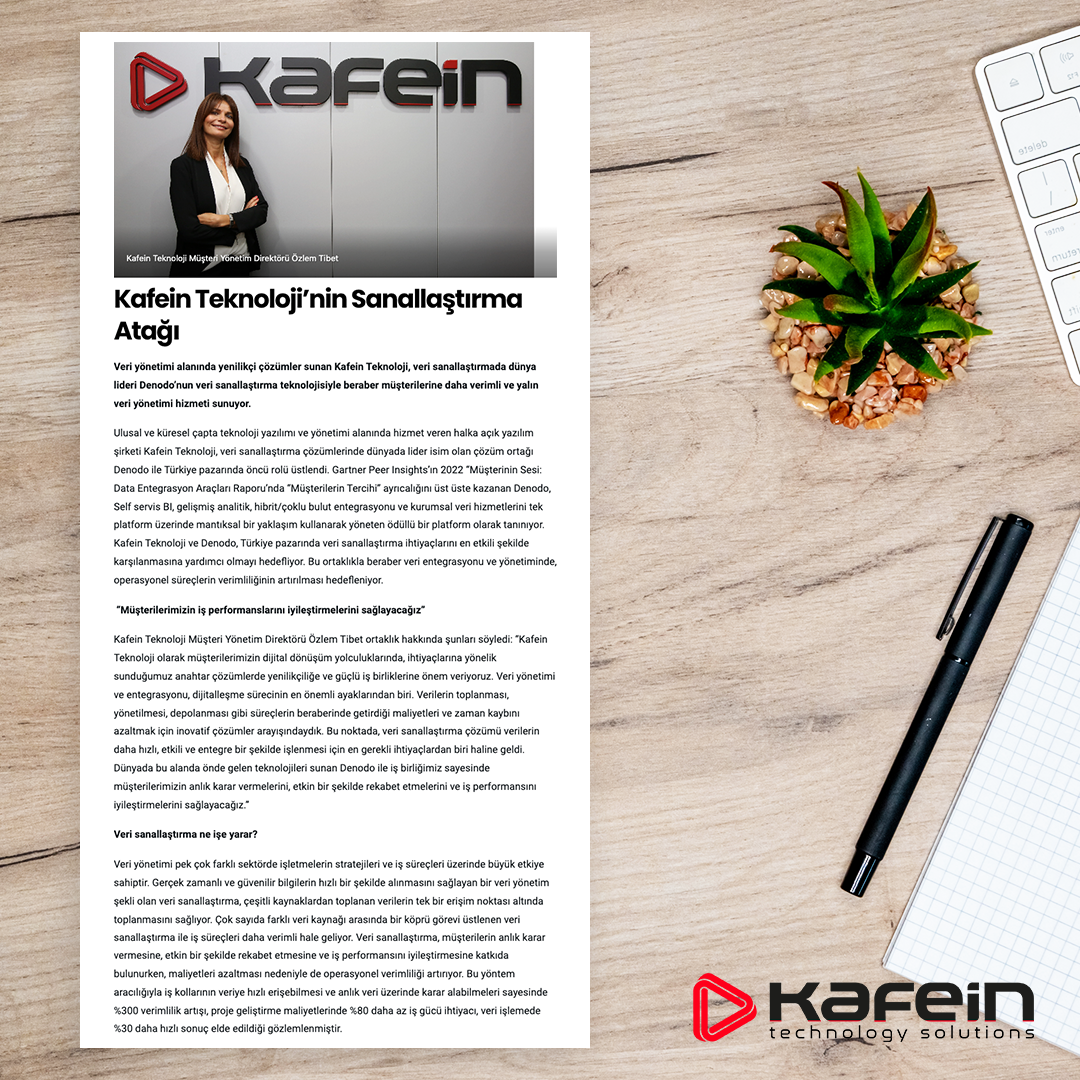 Kafein Technology, a publicly traded software company providing national and global technology software and management services, has assumed a pioneering role in the Turkish market with its solution partner Denodo, the world's leading name in data virtualization solutions. Gartner Peer Insights' 2022 “Voice of the Customer: Data Integration Tools Report” by Gartner Peer Insights, Denodo Self-service BI is recognized as an award-winning platform that manages advanced analytics, hybrid/multi-cloud integration and enterprise data services on a single platform using a logical approach. Kafein Technology and Denodo aim to help meet the data virtualization needs of the Turkish market in the most effective way. With this partnership, it is aimed to increase the efficiency of operational processes in data integration and management.