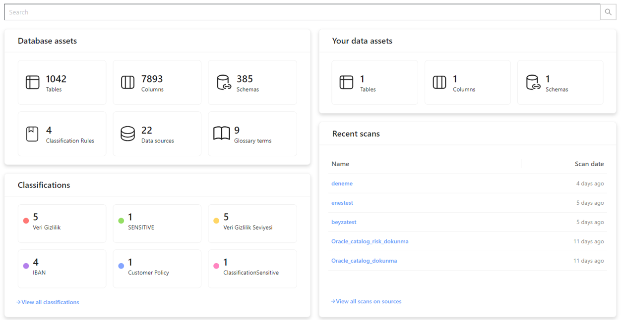 - Dashboard: See all the details of your data asset at a glance! Discover the company's database assets, user's data assets, data classifications, recent scans and more...