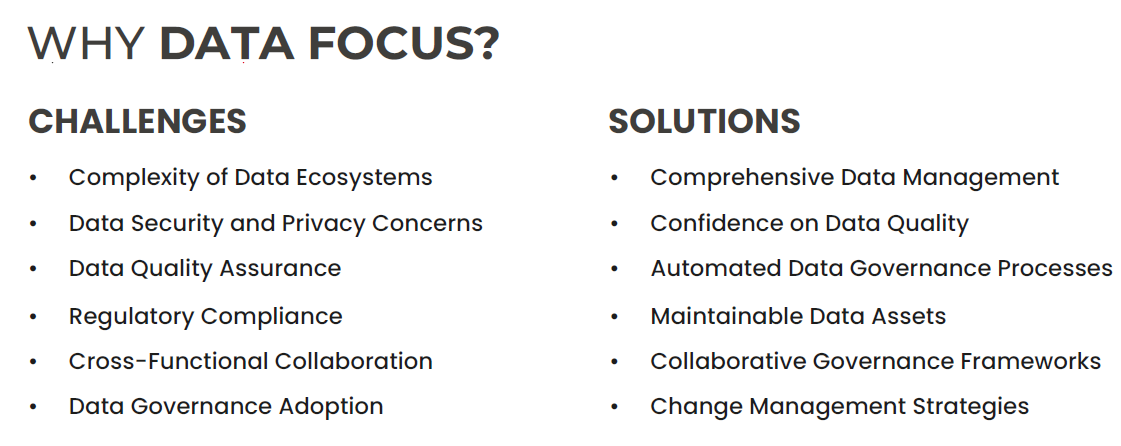 Data Focus is an integrated data governance tool created to enable you to manage and maintain your in-house data assets.