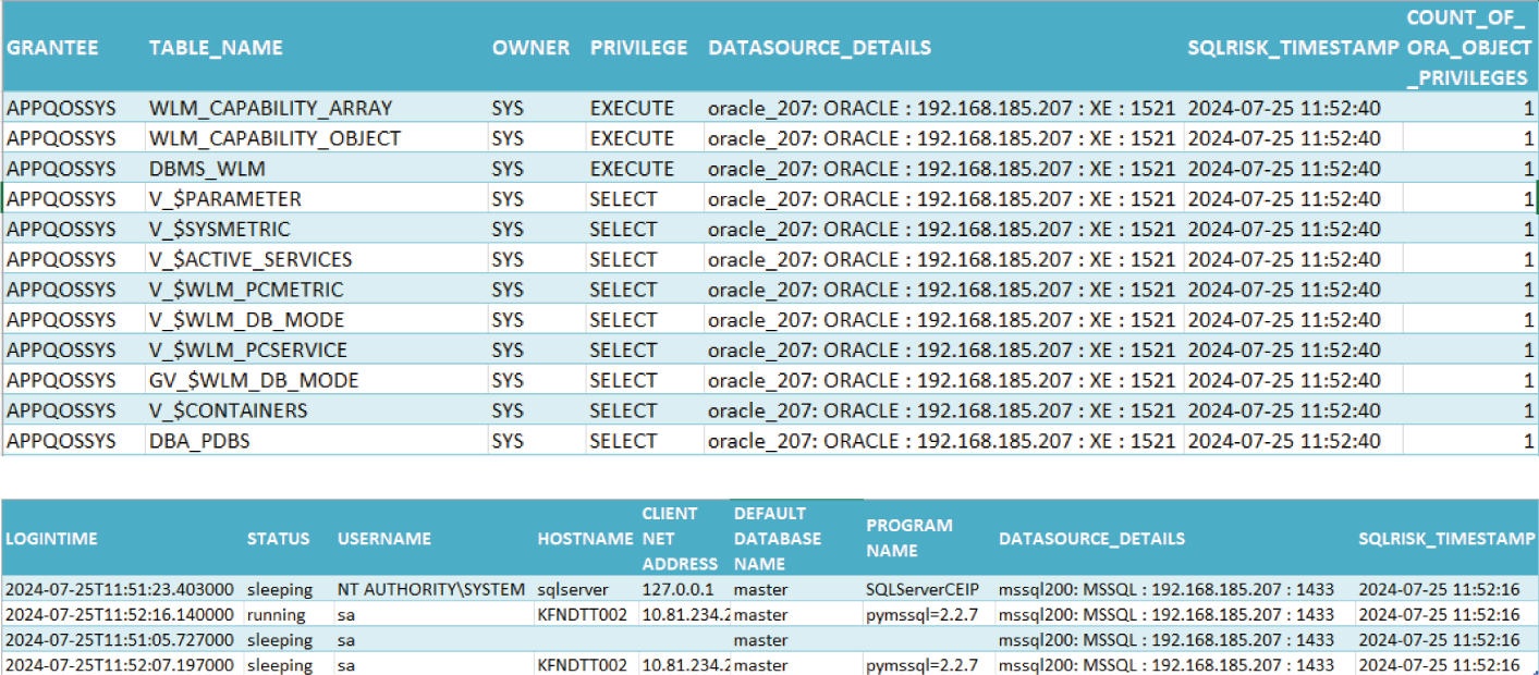 - Data Source Spectrum Reports: Provides extensive user privilege reports for various databases including Oracle, MS SQL, PostgreSQL, MySQL and MongoDB .Reports include user roles, altered privileges, login times, number of administrators and many more.
